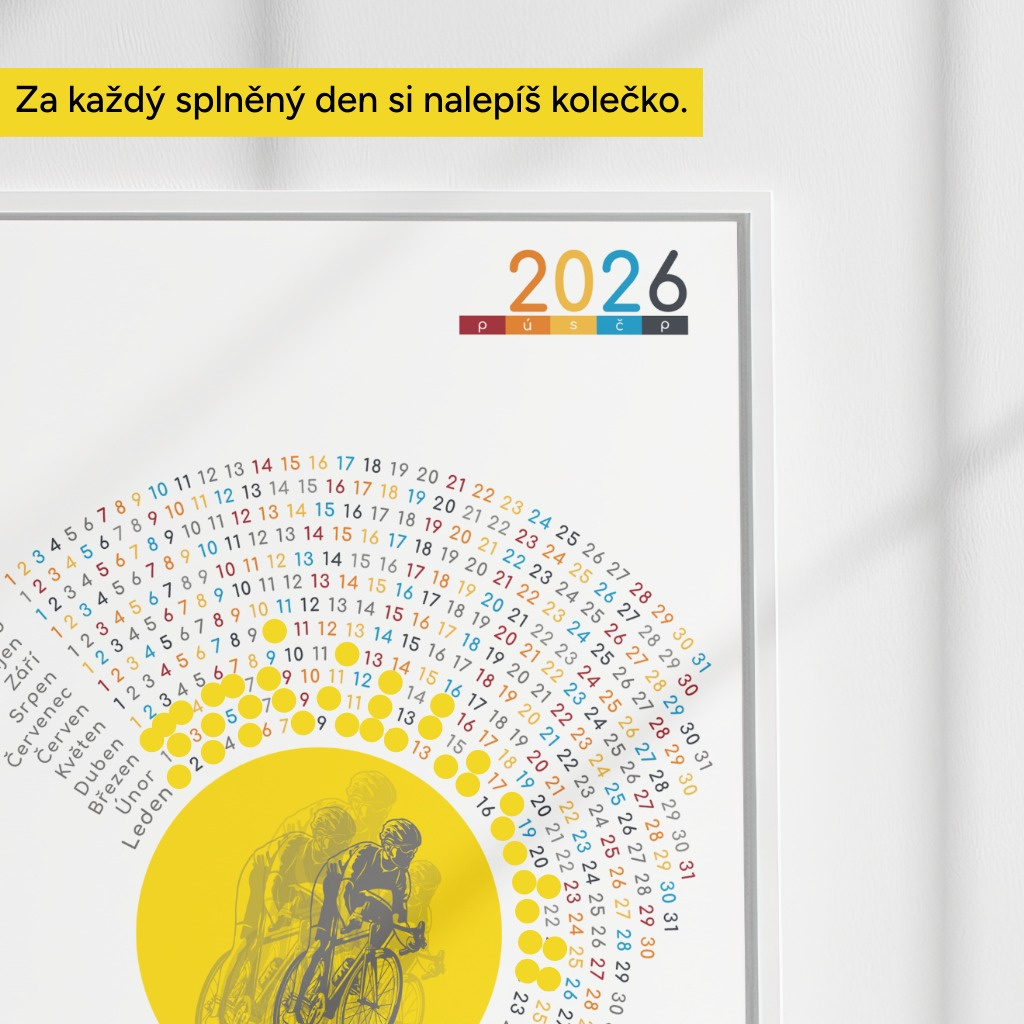 Součástí kalendáře jsou samolepící žluté Dotiesky 🟡, pomocí kterých po splnění aktivity označíš daný den v kalendáři. Pro inspiraci navštiv stránku Jak vyplňovat?.